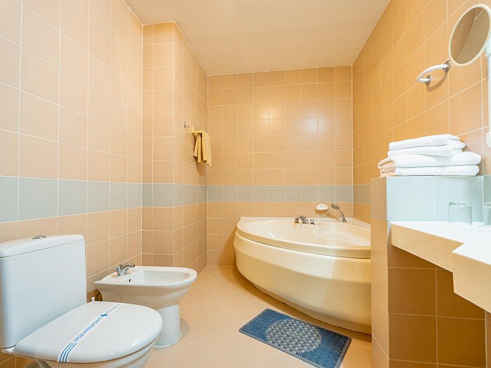 Санузел: джакузи, раковина, унитаз, биде, полотенца, тапочки, халаты, банные принадлежности
