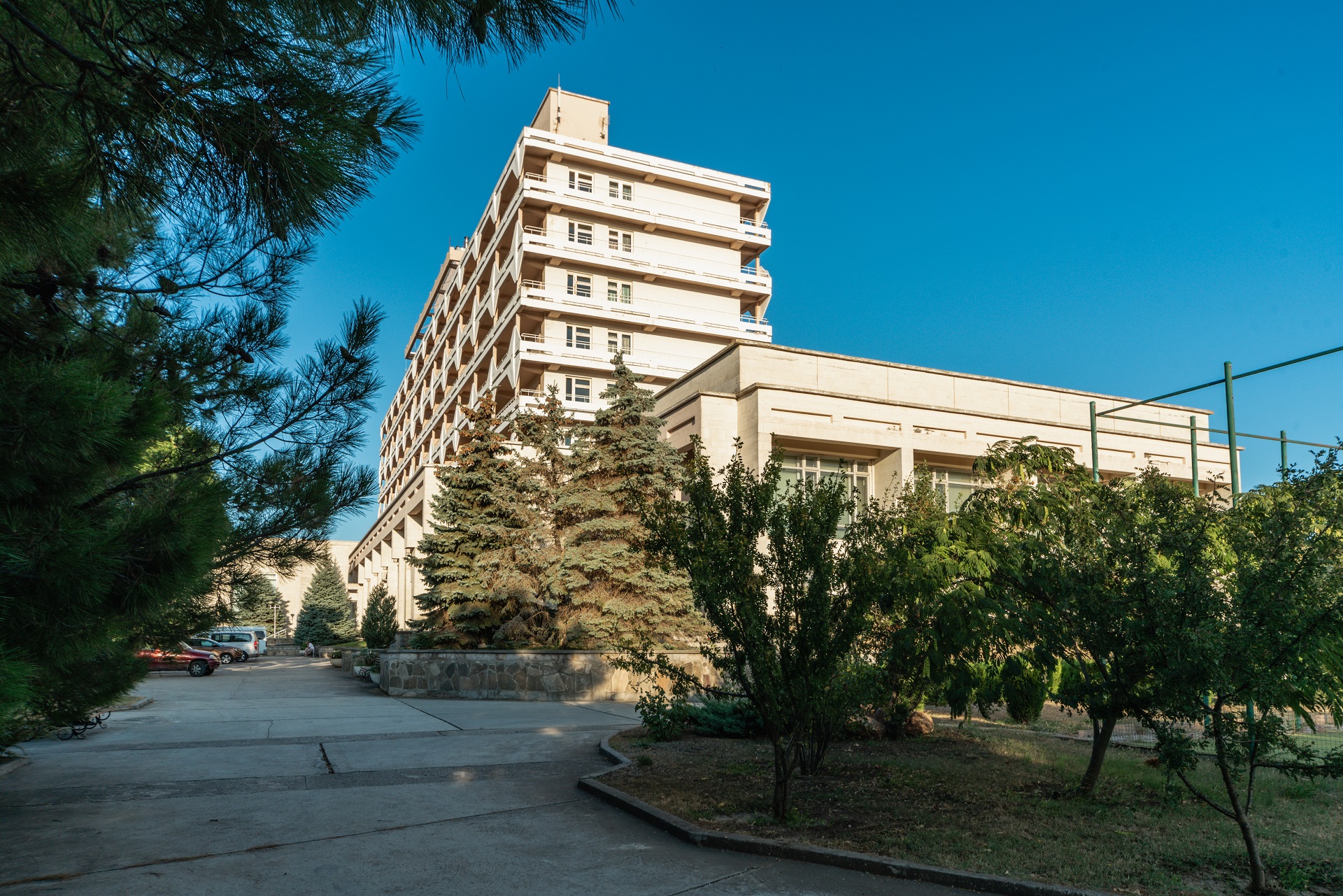 Санаторно-курортный комплекс "Планета" Евпатория - это девятиэтажный современный спальный корпус на 300 мест, оборудован лифтами. Все номера современные, с кондиционерами. Территория пансионата парковая, ухоженная, озеленённая, имеется искусственное озеро с лебедями, ручей.
