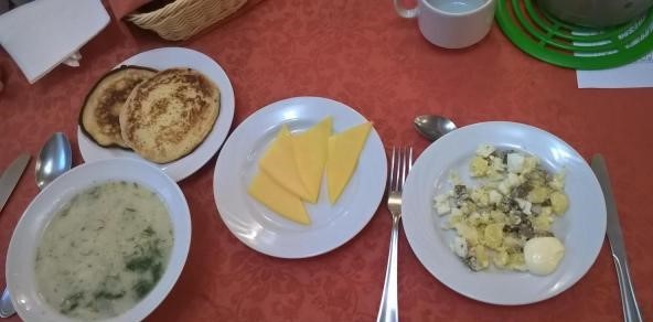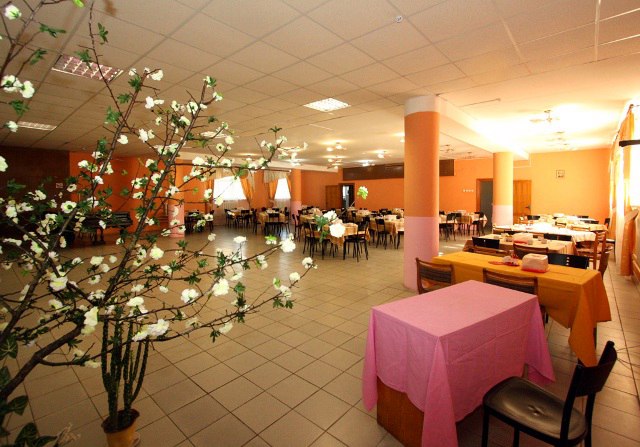 Приемы пищи проходят в уютной столовой с обеденным залом на 120 посадочных мест, где гостям предоставляется 5-и развое сбалансированное разнообразное питание (заказное меню из 2-4 вариантов с элементами шведского стола: свежая выпечка, сухие завтраки, кофе, горячее молоко к завтраку, в обед - салат-бар; диетические столы: диета - Б, Б(д), П.