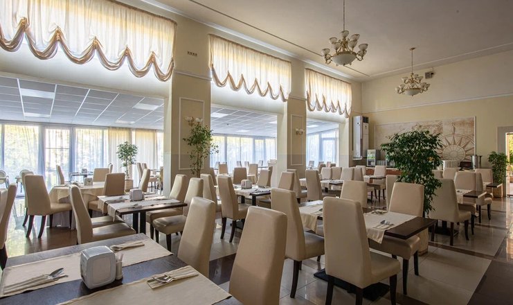 Ресторанный комплекс расположен в отдельно стоящем здании, рядом с корпусом «Семейный» №1.