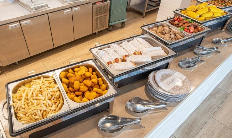 Предусмотрено диетическое питание, детское меню, усиленное питание для спортсменов, проводятся дни национальной кухни.